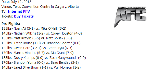 Update – July 12, 2013 – After this story was republished at MMASucka the folks there reached out to AFC Promoter Darren Owen who provided the following comments about this development: