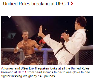 The sport has come a long way since that time and revisiting the first event through a modern lens is an interesting experience. After recently re-watching UFC 1 for the first time in a long time I couldn’t escape the lawyer in me scrutinizing everything that would not be allowed in the current landscape. Since the rules of MMA vary across jurisdictions I will use the UFC’s summarized Unified Rules for this exercise and review the fouls of UFC 1 which would not presently be permitted: