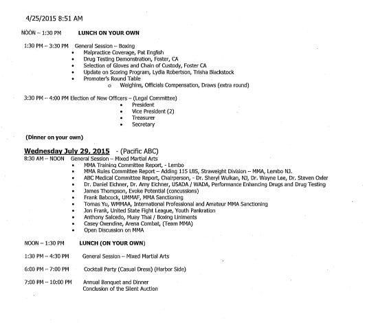 These annual meetings address a host of interesting topics and are important in advancing the regulatory framework for combative sports. This years full agenda can be found below –