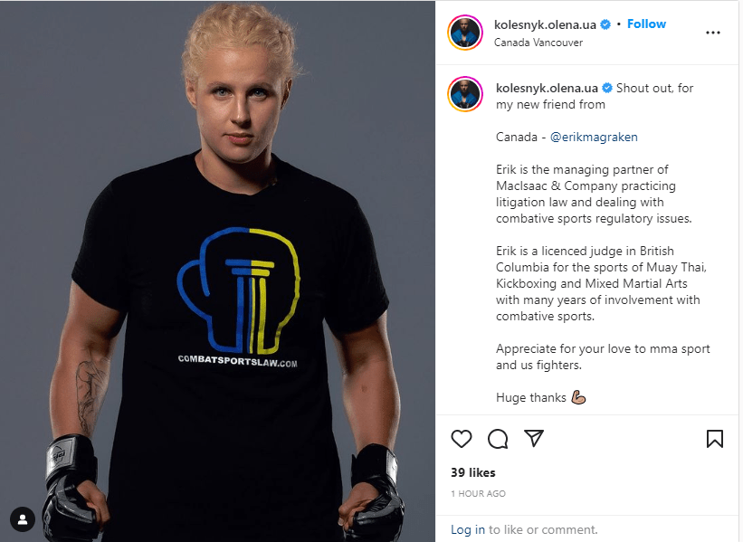 My lawfirm, via combatsportslaw, was proud to sponsor badass Ukrainian fighter Olena Kolesnyk during this season’s Professional Fighters League run in the women’s lightweight bracket.