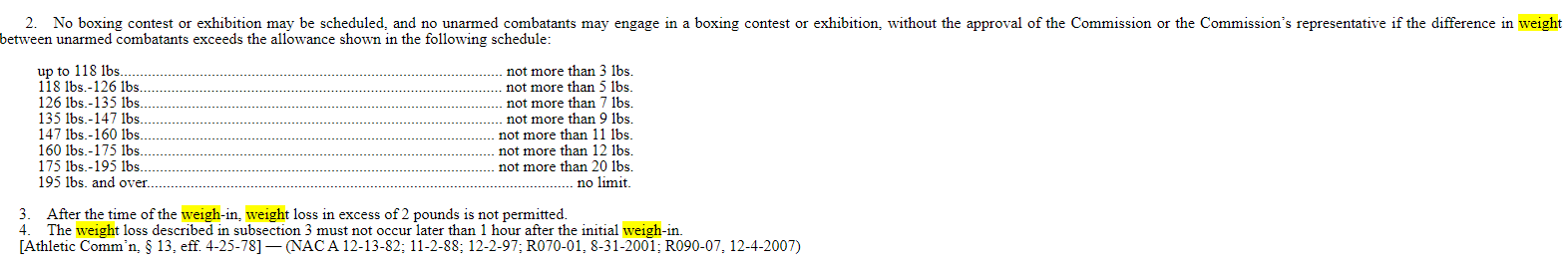 Nevada rules allow certain spreads to be allowed even if weight is missed. This type of a wide miss still is within bounds so it is all the more odd that the attempt is being made.