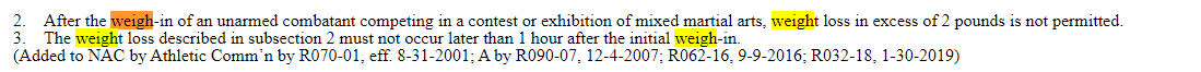 A fighter cannot cut more than 2 pounds after missing weight in MMA in Nevada. Here he is trying to cut more than triple that.
