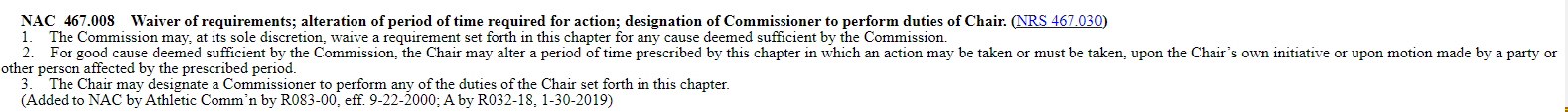 Lastly (but most importantly if you bothered reading all of the above), THERE ARE NO RULES! Nevada has a rule that says they can waive their rules. Let’s see how this mess plays out.