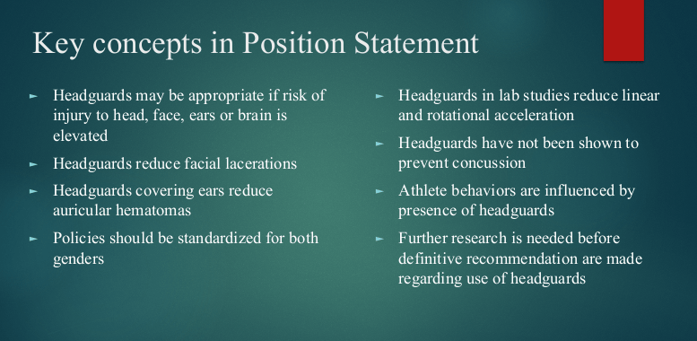 - But, when athletes were headguards their ‘behavioiurs’ are influenced.