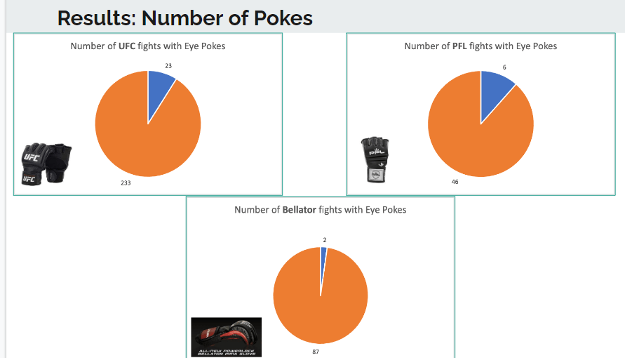 The findings were that the UFC and PFL had nearly identical rates but Bellator enjoyed meaningfully lower rates of eye pokes in bouts.