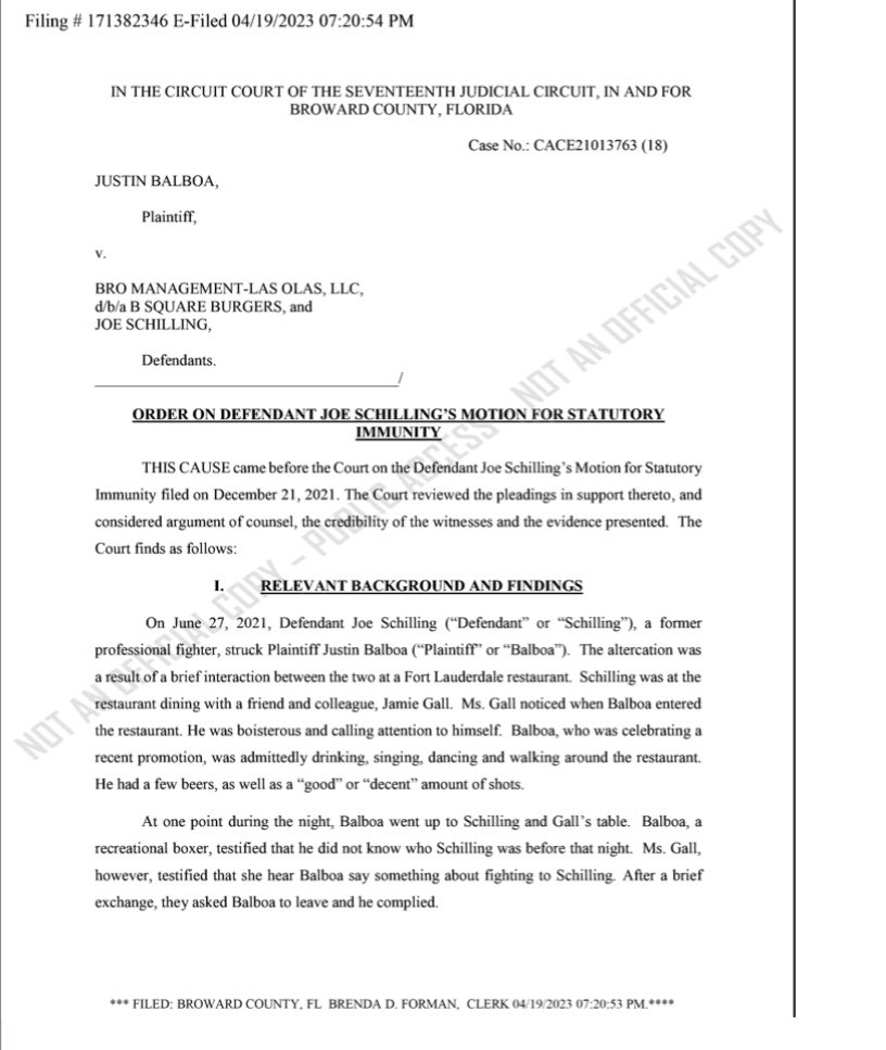 The case turns on a split second. Before Schilling unleashed his punches Balboa is filmed doing what appears to be a head feint. The Court believed that this gesture was threatening and Schilling genuinely believed he was under threat of harm and acted reasonably. Another judge certainly could have decided things differently.