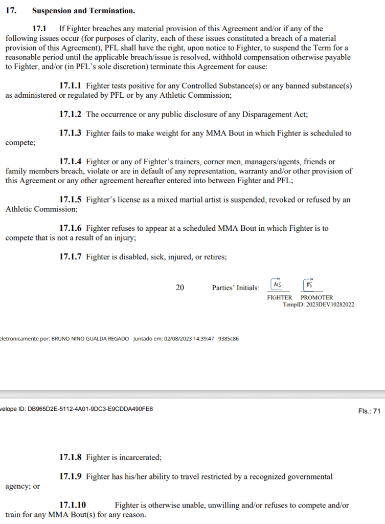 Like many MMA promotions the PFL give themselves a long list of ways they can freeze or extend the term of the contract.