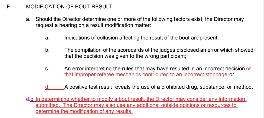 This is progressive. This is good for fighters. And this will even allow the commission to outsource the process to a third party body that does not have the inherent conflict of interest that a commission has reviewing the actions of their own officials.