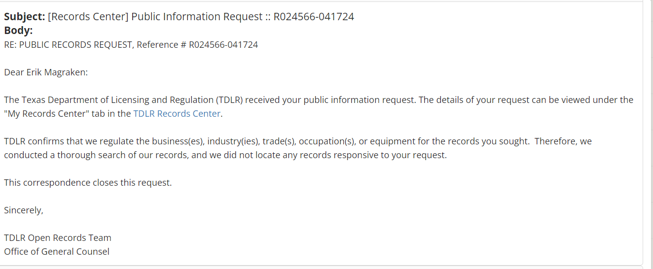 A public notice was published on the Texas Department of Licencing and Regulation’s website today. (HT Trent Reinsmith)